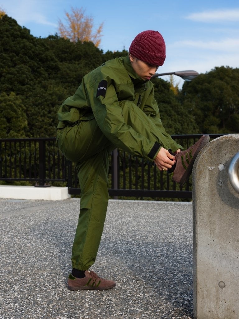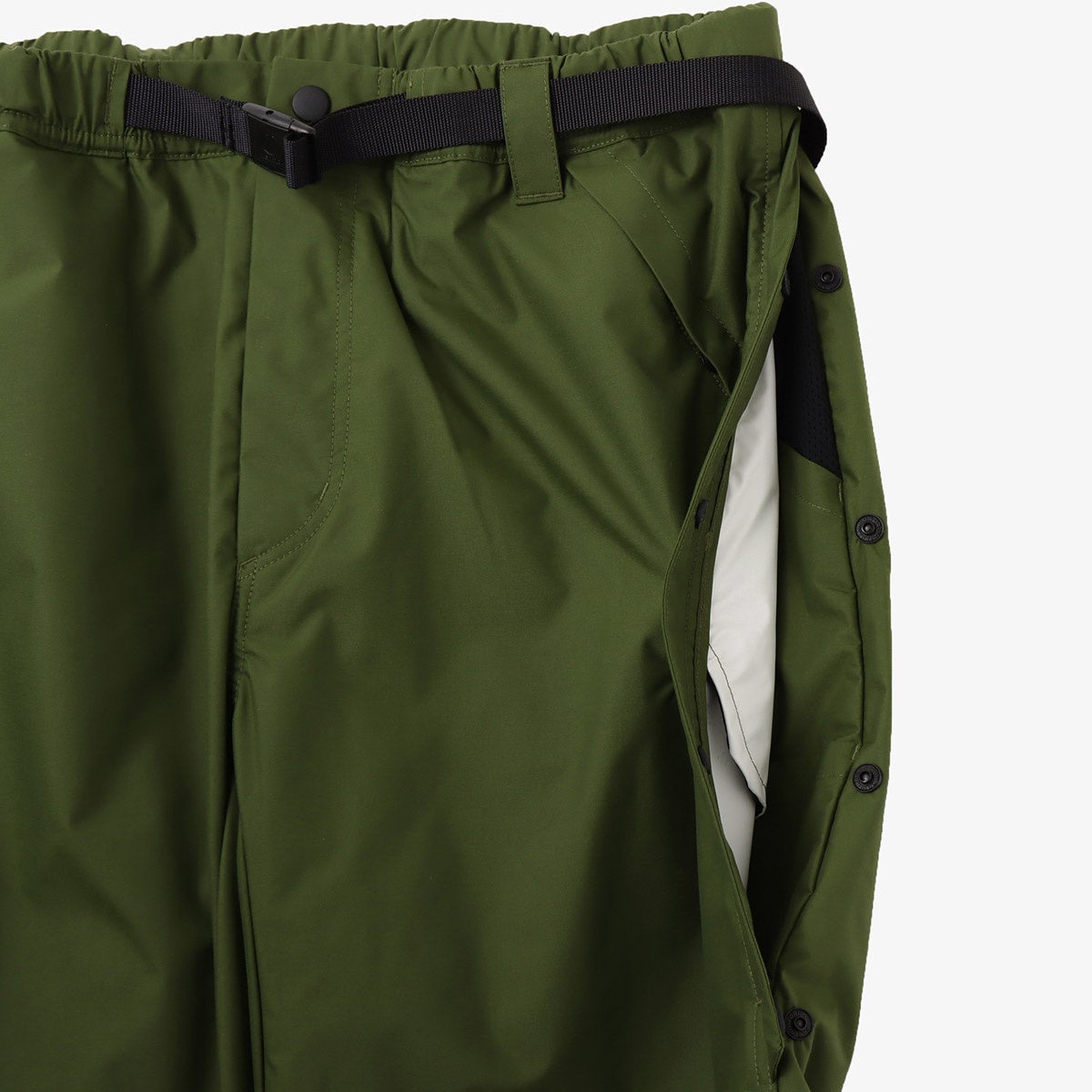 ジャケットと同素材を使ったテック感のあるパンツは、メッシュポケット、サイドパネル、隠し通気口を加えたデザインで仕上げ、ウェストにはミニマルなスナップバックルを装備。また、デイリーに使いこなせる利便性に優れたポケットを複数配備。アウトドアのアイデンティティを紡ぐ動きやすさを意識したテーパードな作りと、汗をかきやすい膝裏のベンチレーションメッシュでストレスフリーな履き心地を提供いたします。