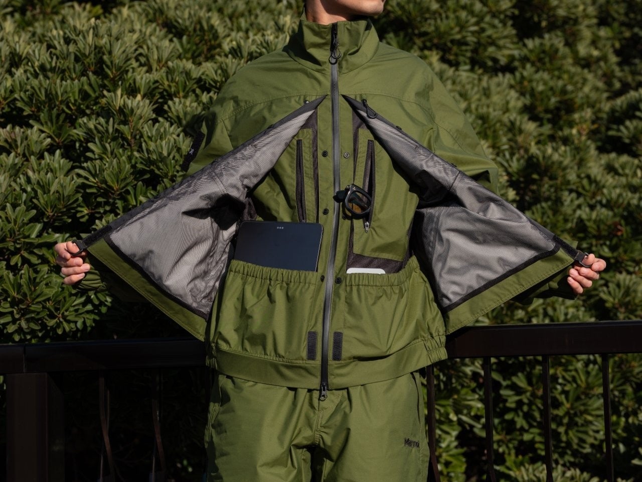 今回フォーカスするのは、Marmotの様々なアクティビティに適応する撥水性と透湿性を兼ね合わせたハイスペックなテキスタイルであるTORAYのEntrant®を駆使したジャケットとパンツをラインナップ。