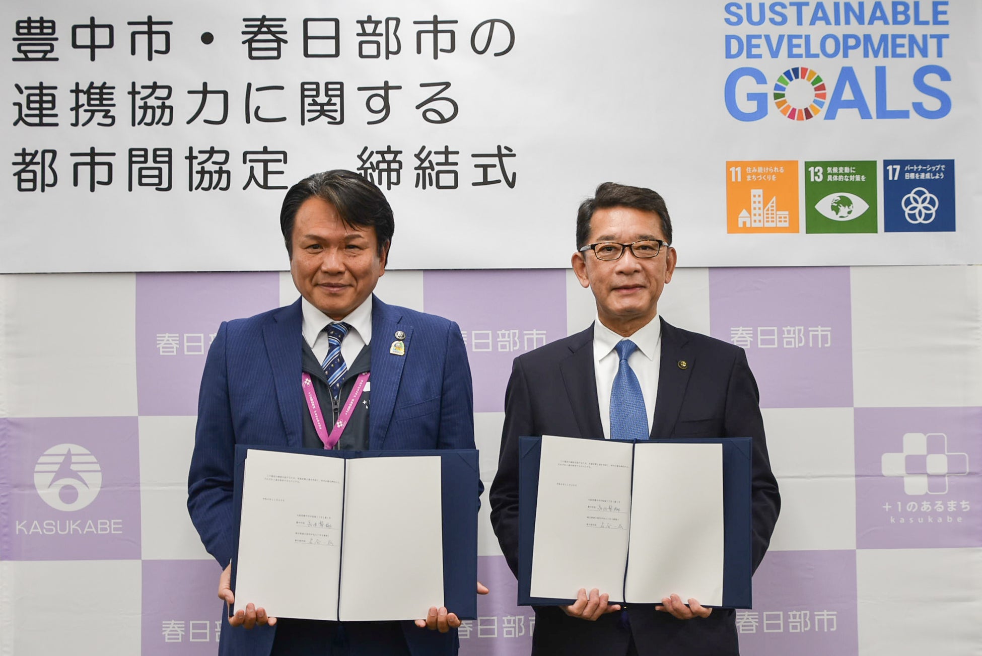 豊中市と埼玉県春日部市は、お互いが持つ資源や特徴を生かしながら、それぞれの地域の活性化及び持続的な成長に向けた取組みを連携・協力して推進することを目的とする都市間連携協定を締結しました。