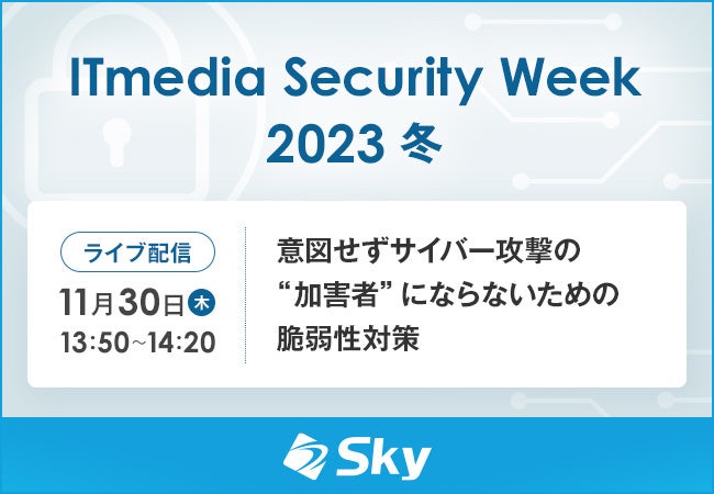 ライブ配信セミナー「ITmedia Security Week 2023 冬」に協賛、『意図せずサイバー攻撃の“加害者”にならないための脆弱性対策』をテーマに講演を実施いたします