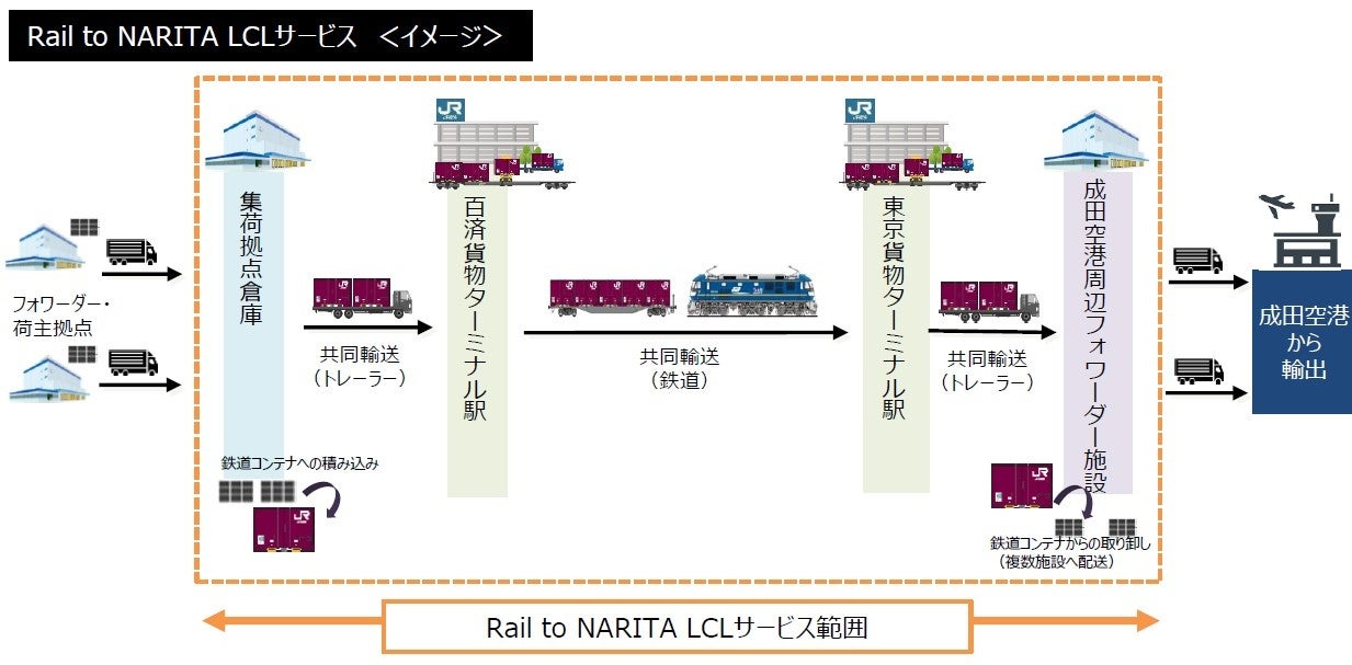 成田空港から輸出される貨物を対象とした鉄道共同輸送サービス(関西→成田間)の実証実験を開始