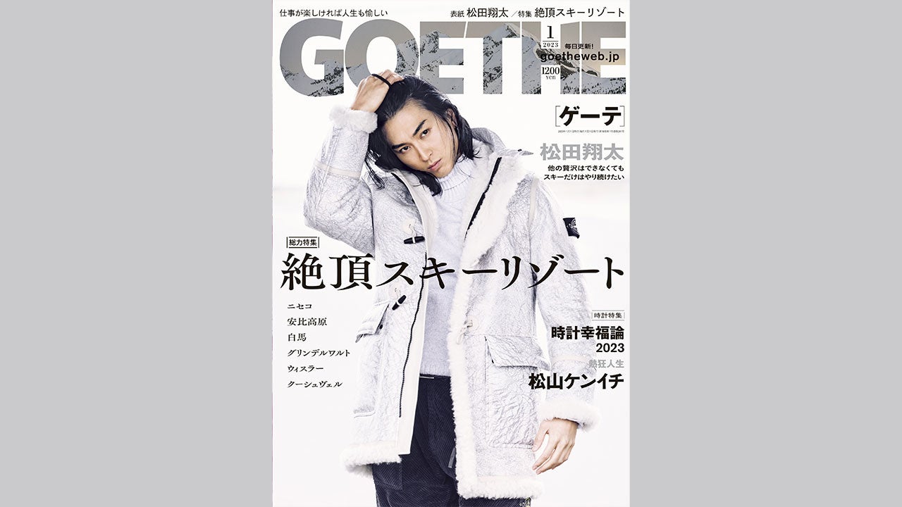 仕事に遊びに一切妥協できない男たちが、人生を謳歌するためのライフスタイル誌[ゲーテ]1月号が2022年11月25日に発売となる。本格的なウィンターシーズンの到来に向け、今月号はスキーリゾートを大特集。さらに、新作タイムピースをピックアップした時計特集ほか、新ビジネスを始めた松山ケンイチ、松田翔太のインタビューやゲーテ公式ECサイト「ゲーテストア」限定アイテムも必見!