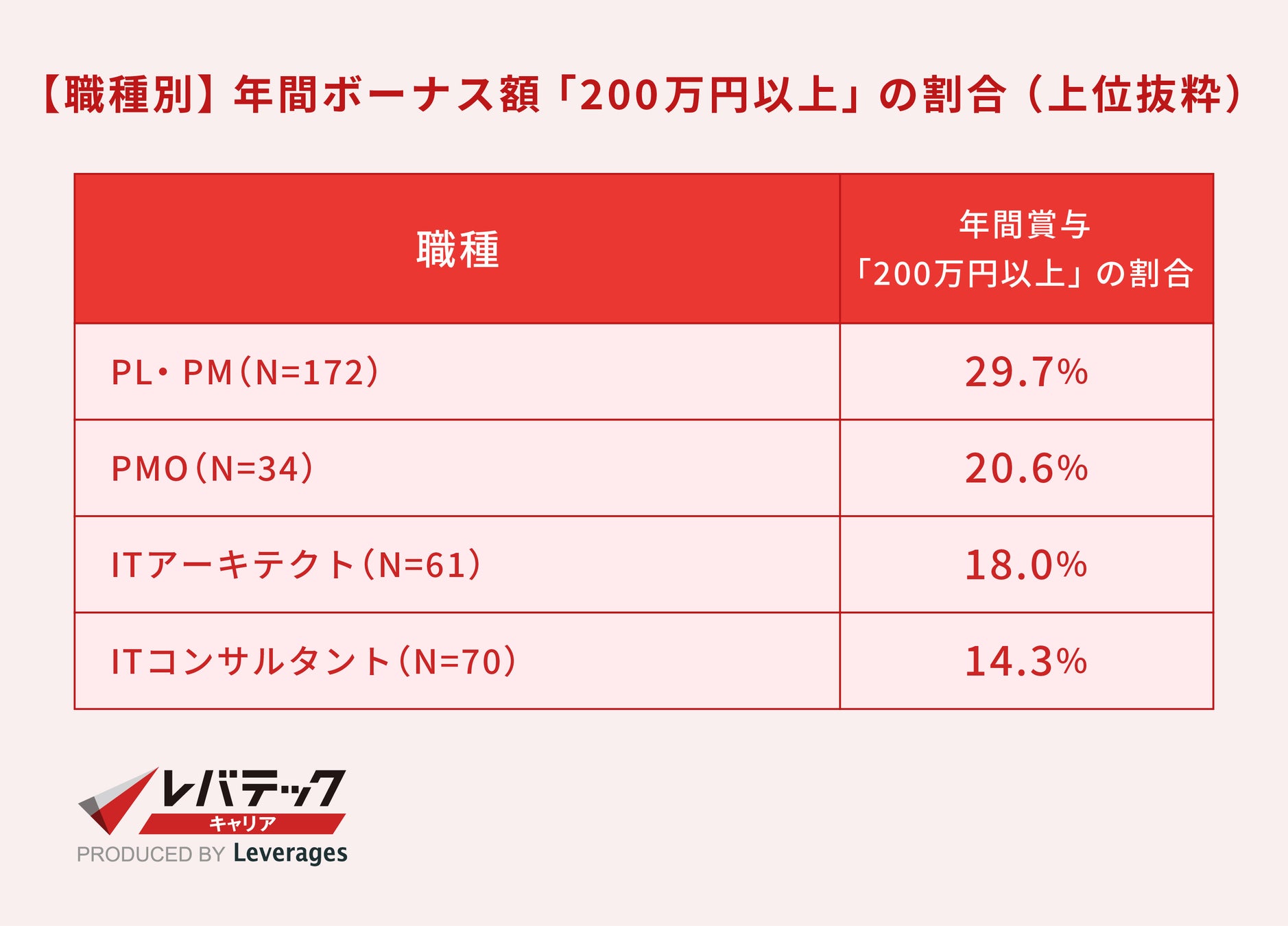 4.8割以上のIT人材がボーナスを受給、PM・PLの約3割が年間賞与「200万円以上」