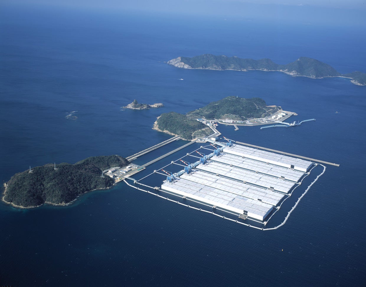 同基地は、世界で初めて洋上タンク方式を採用した原油備蓄基地として、1988年9月に完成。防波堤により平穏な泊地を確保し、貯蔵船5隻を並列に配置し各貯蔵船を防油堤で囲むもので、貯蔵船1隻あたりの貯油能力は88万キロリットル(5隻合計で440万キロリットル)です。