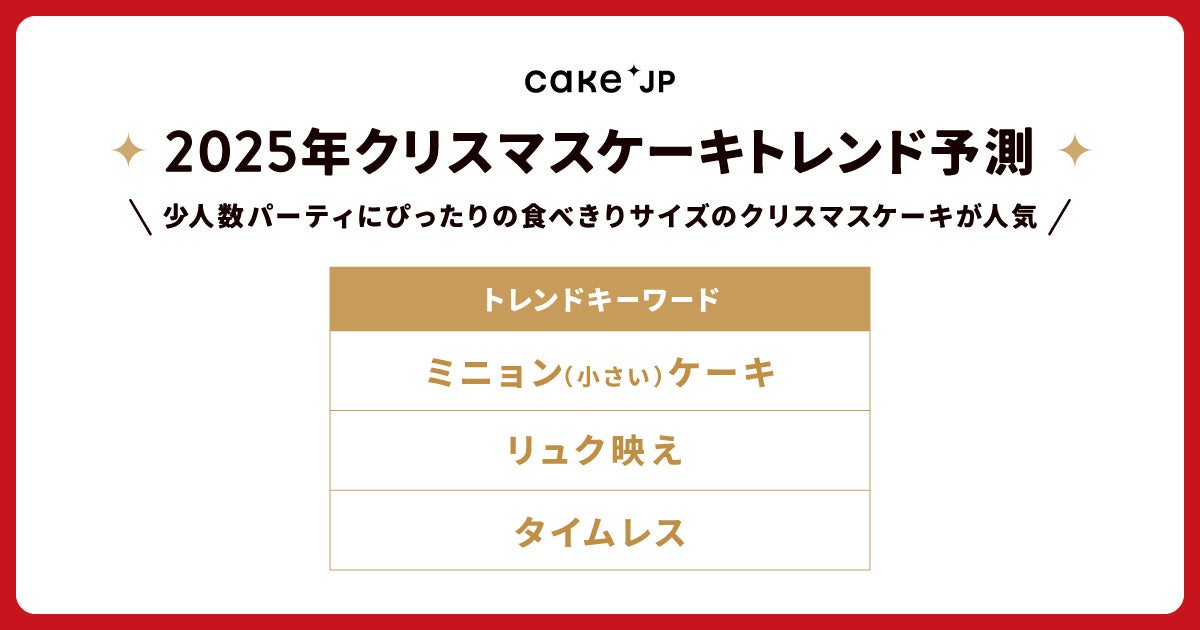 【Cake.jpによる2025年クリスマスケーキトレンド予測】「ミニョン(小さい)ケーキ」「リュク映え」「タイムレス」がトレンドキーワードに!