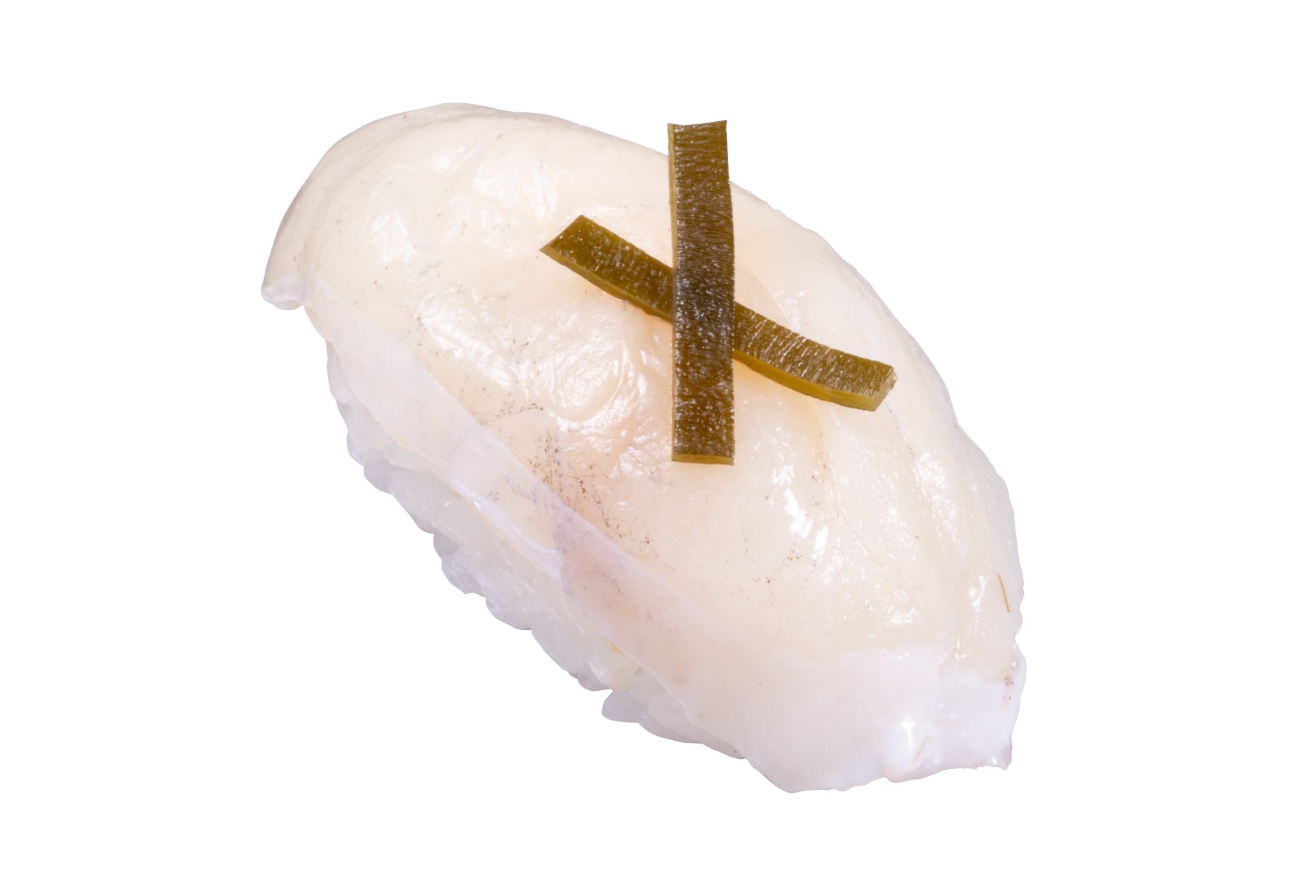 石川県の伝統的な料理であるフグの昆布〆をにぎりにしました。