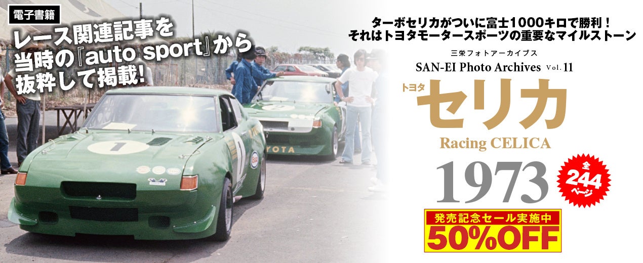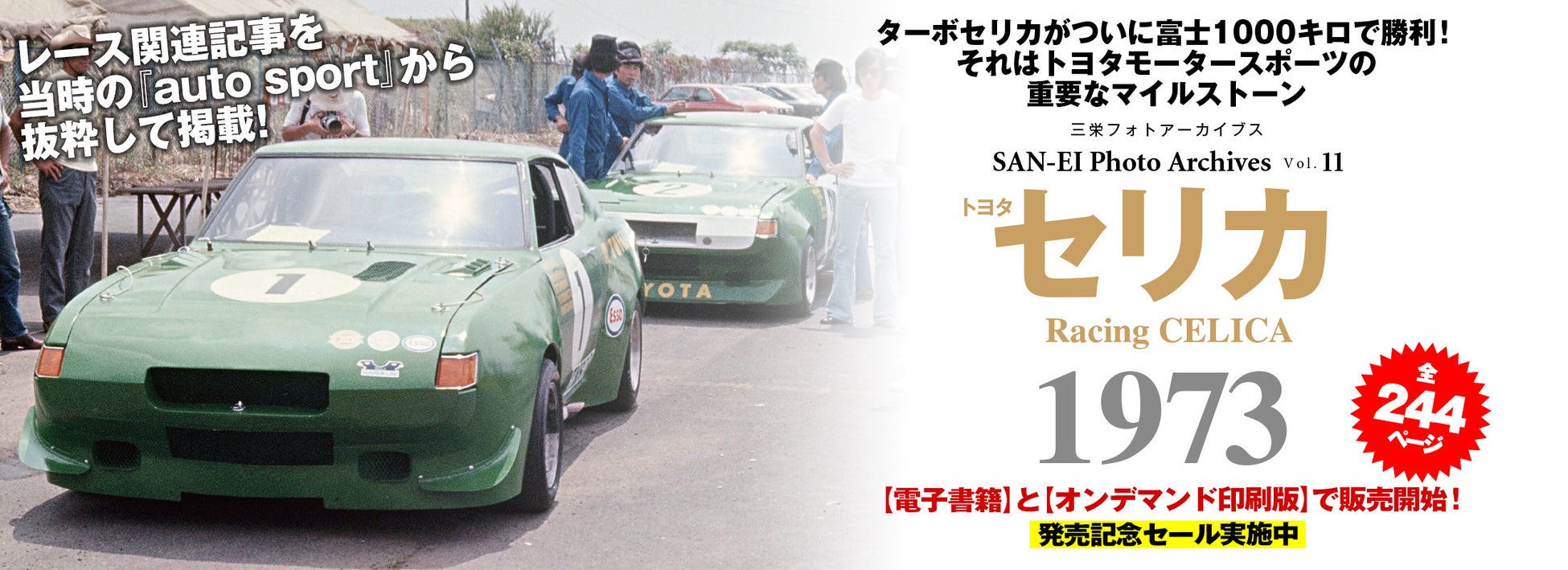 株式会社三栄(本社所在地:東京都新宿区)は、写真集『トヨタ セリカ 1973』を電子書籍とオンデマンド印刷版で発売しました。シリーズ第11弾となる今回の刊行テーマは、前号(Vol.10)に続きトヨタ セリカ。1971のレースデビューから3シーズン目を迎えたセリカはターボエンジンを熟成させ富士1000キロで優勝を果たします。これを機に、トヨタのレーシングターボエンジンは、さまざまなレースカテゴリーで目覚ましい活躍をしていくことになります。そんなセリカが駆け抜けた1973年シーズンの写真ギャラリーの他、モータースポーツ専門誌「オートスポーツ」から当時のレース内容を伝えるレポート記事を抜粋して再録しています。なお現在、発売記念セール中につき、同号を期間限定の特別価格にてご提供しています。