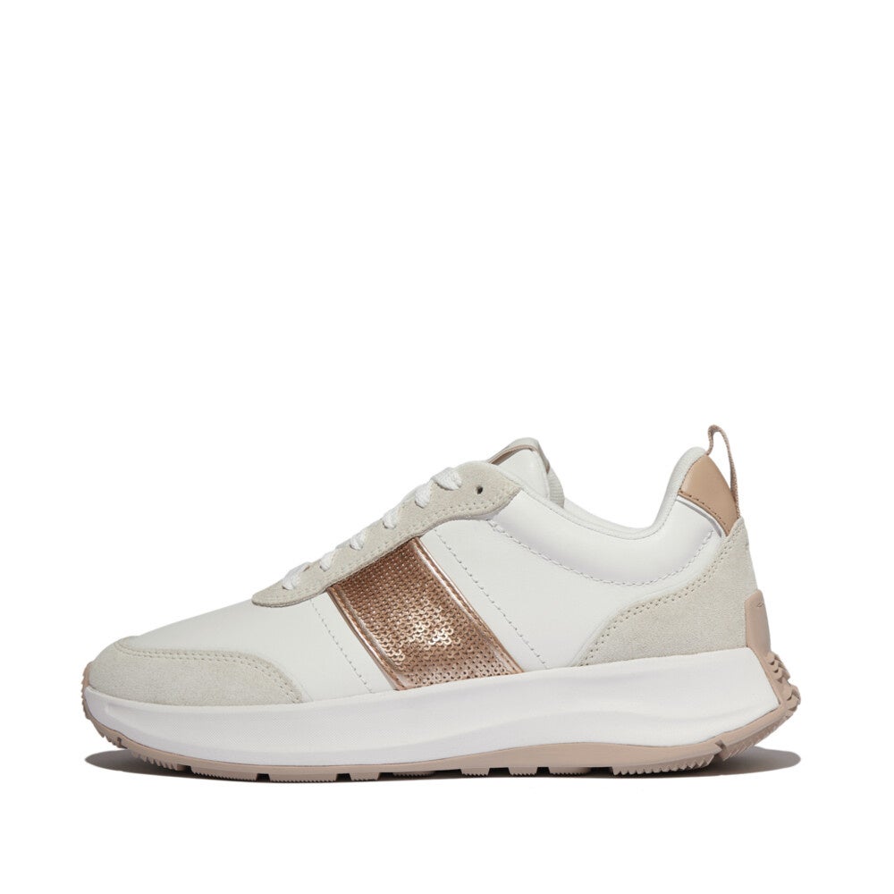 上品さと華やかさを兼ね備えた新作スニーカー。アーバンホワイトのレザーとクラシックベージュのスエードを組み合わせた落ち着きのある配色に、サイドを彩るローズゴールドのスパンコールが輝きを添えます。