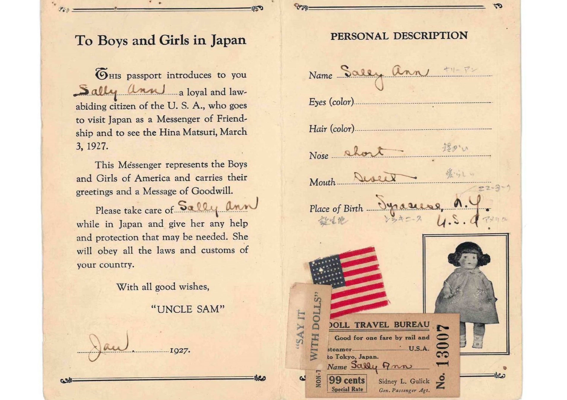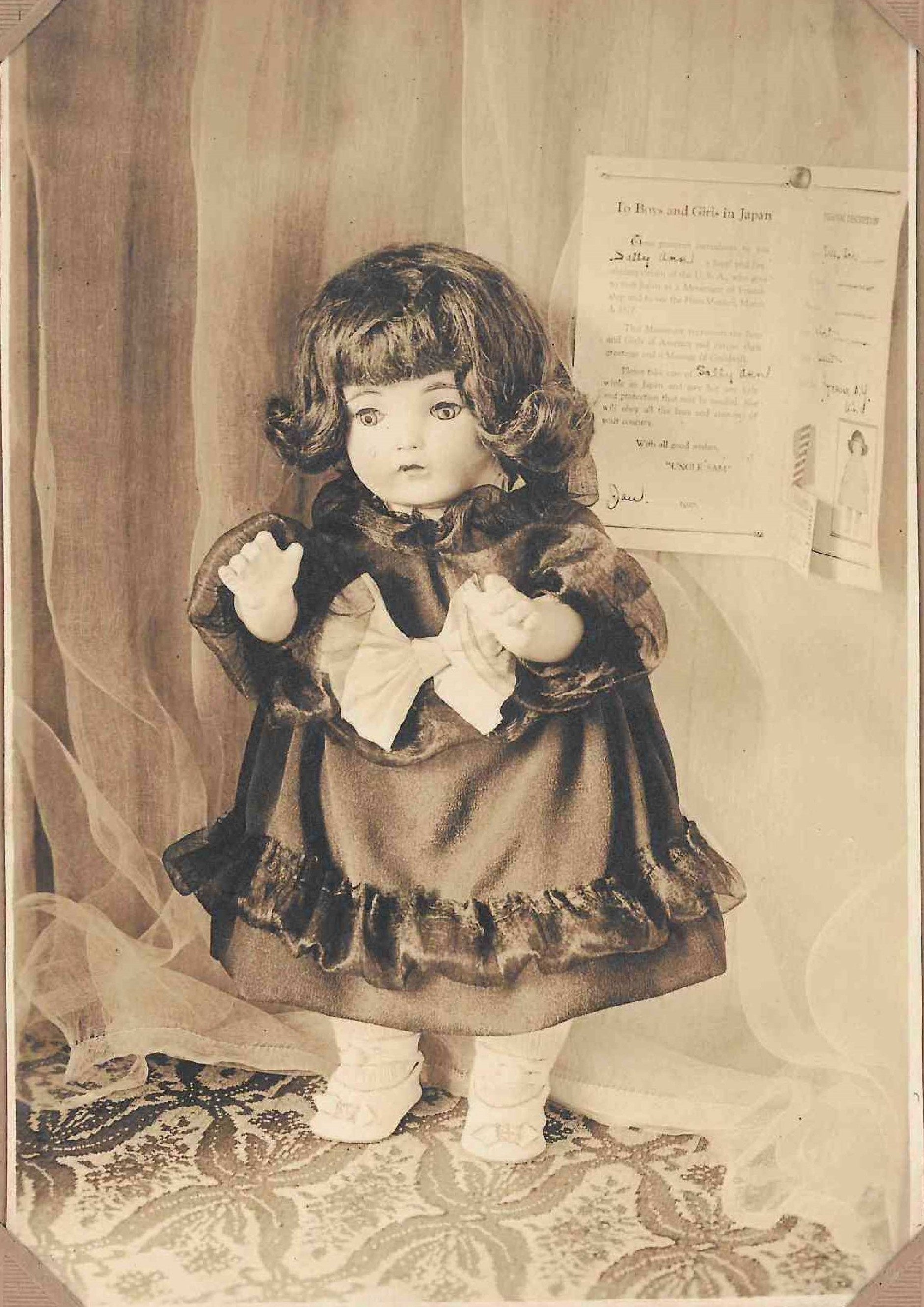 昭和2年(1927)、日本の3月3日の雛祭りに間に合うようにと、アメリカから12,739体の親善節人形「青い目の人形」が送られてきました。これを受けて日本からは、12月25日のクリスマスに間に合うようにと58体の答礼節人形「黒い目の人形」が送られました。