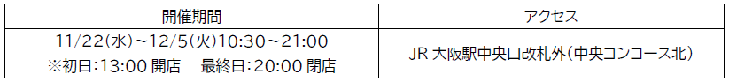 ・ 営業時間: 10 30 21 00 初日は 13 :00 開店、 最終日は 20 :00 閉店