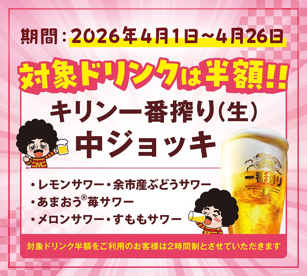 ・対象ドリンク半額をご利用のお客様は2時間制とさせていただきます。