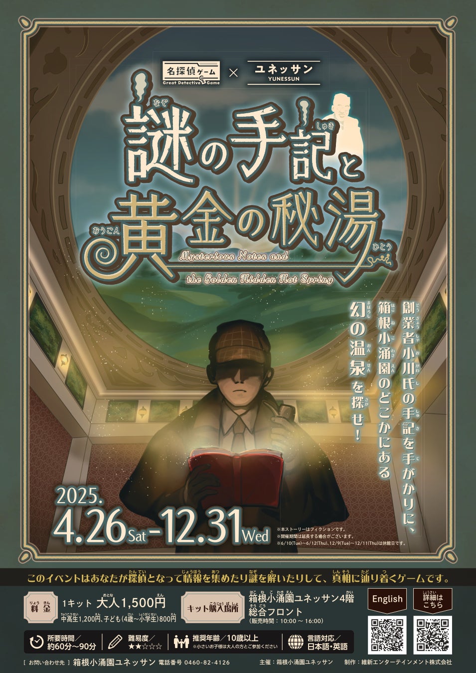 ユネッサンに謎解きゲームが新登場!箱根小涌園の歴史を学びながら情報を集め、真相解明を目指します。