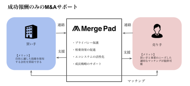 「MergePad」は、Web3に特化したM&Aプラットフォームです。新規にWeb3・ブロックチェーン技術を既存の事業に活用したい事業者と、優れた技術やプロジェクトを有する事業者が社会に与える影響を最大限引き出すことを目的としています。