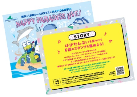 オリジナルのスタンプラリー冊子を手に、水族館各所に設置された計6箇所のスタンプを集めて、八景島内を楽しんでいるはぴだんぶいのメンバーを探すスタンプラリーを開催いたします。すべてのスタンプを集めた方にはゴール特典として「はぴパラスペシャルステッカー」をプレゼントいたします。