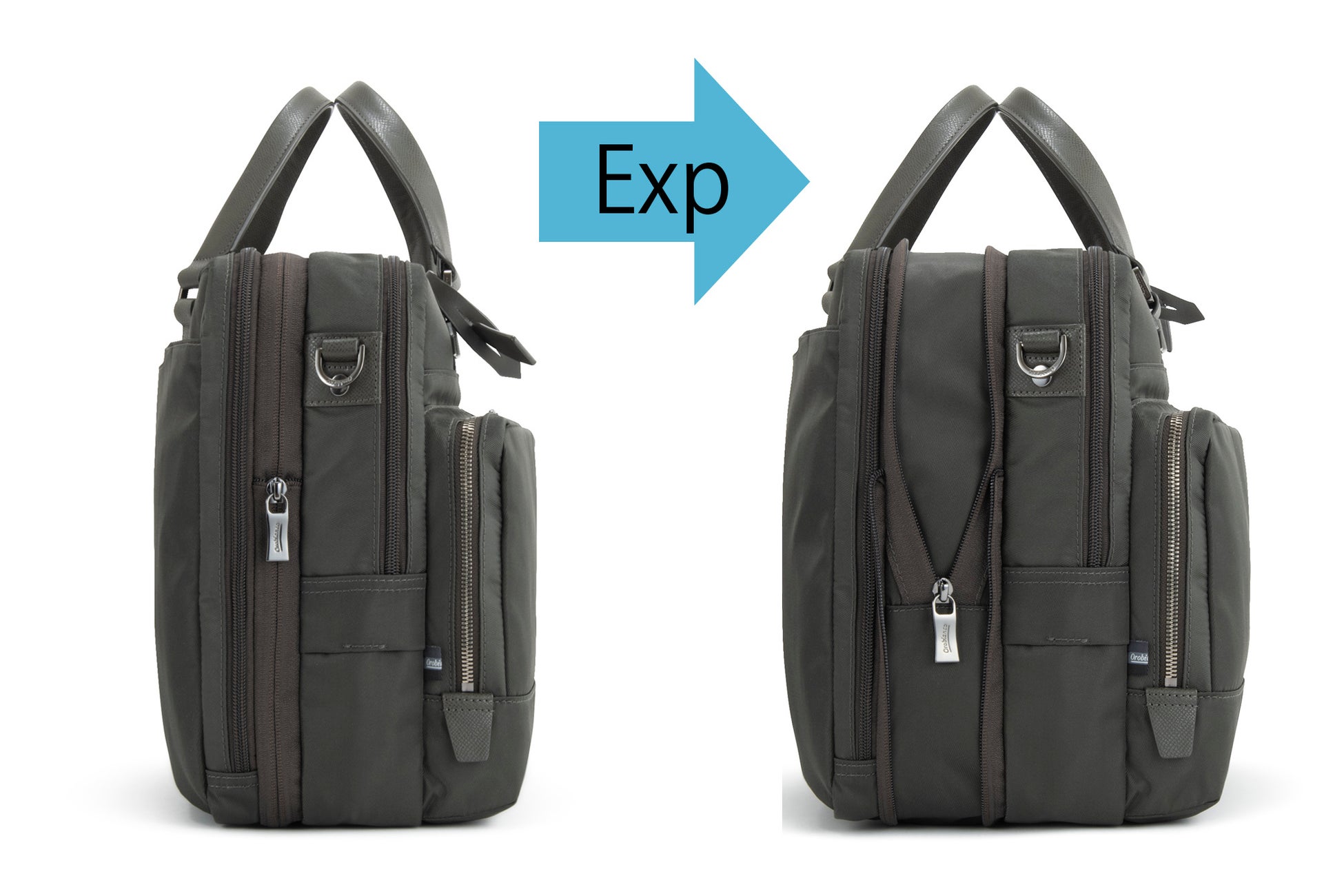 荷物の量に合わせて、バッグのマチ幅を広げて、容量を増やせます。