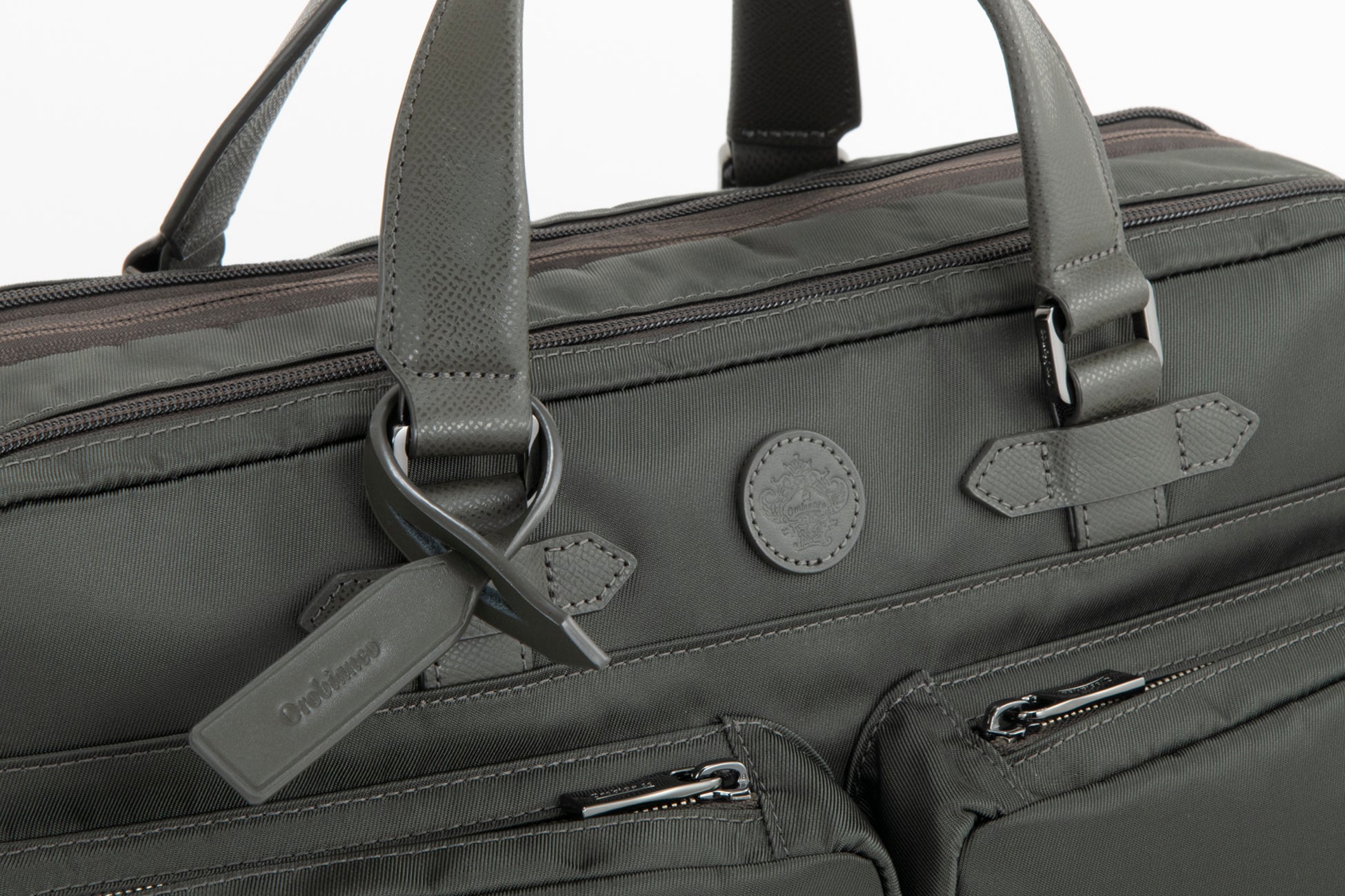「ジェッターノ」は、移動が多いビジネスパーソンへ向けた、シックなデザインと高い機能性を兼ね備えたバッグシリーズです。スーツケースとの併用に便利なセットアップ機能を搭載しており、バッグをプルドライブハンドルに固定することで、走行時の安定性を高め、移動中のストレスを軽減します。さらに、荷物の量に応じてマチ幅を拡張できるエキスパンダブル機能を備えており、出張はもちろん、日々の通勤にも柔軟に対応します。素材には、上品な艶感がありながら、タフな使用環境にも耐えうる耐久性にも優れたコーデュラツイルナイロンを採用。内装には、PC ポケットやペットボトルホルダーをはじめとした多彩なポケットを配置し、荷物の整理整頓をサポートします。ブランドの代名詞であるリボンやフロントにあしらったロゴマークには同系色を用い、全体に統一感を持たせることで、洗練された印象に仕上げました。