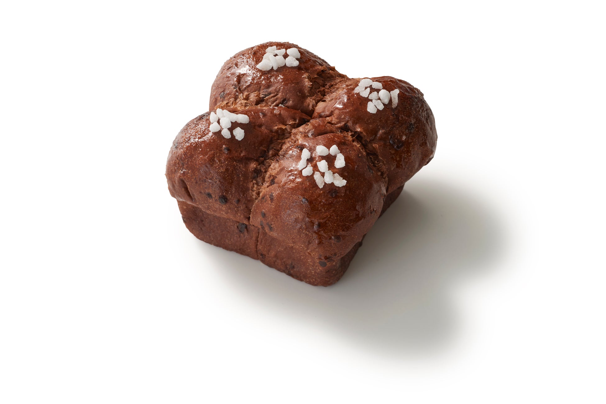 ベルギー産カカオ44%のチョコレートフレークを混ぜ込んだ、ふわふわもちもちのパン。ちぎって分けられるので、おやつやテーブルパンにもぴったりです。