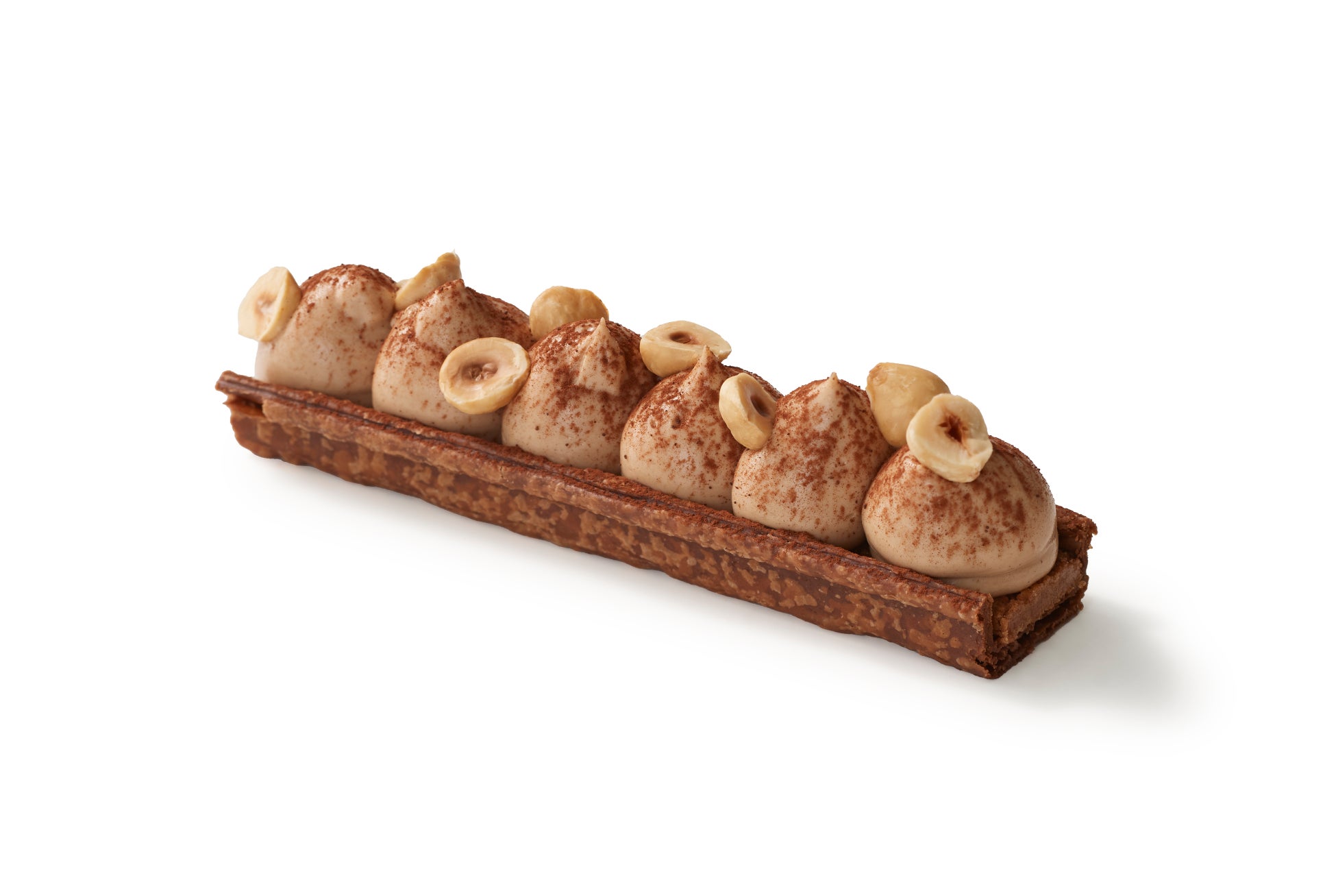 ナッツが香るジャンドゥーヤプレートに、ヘーゼルナッツプラリネとカスタードを合わせたクリームを絞りました。