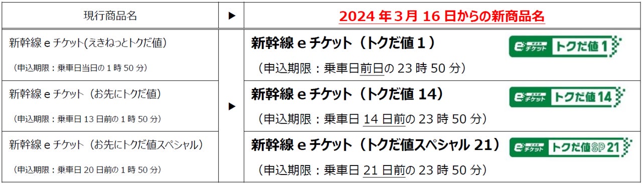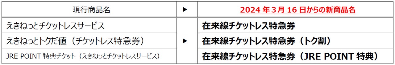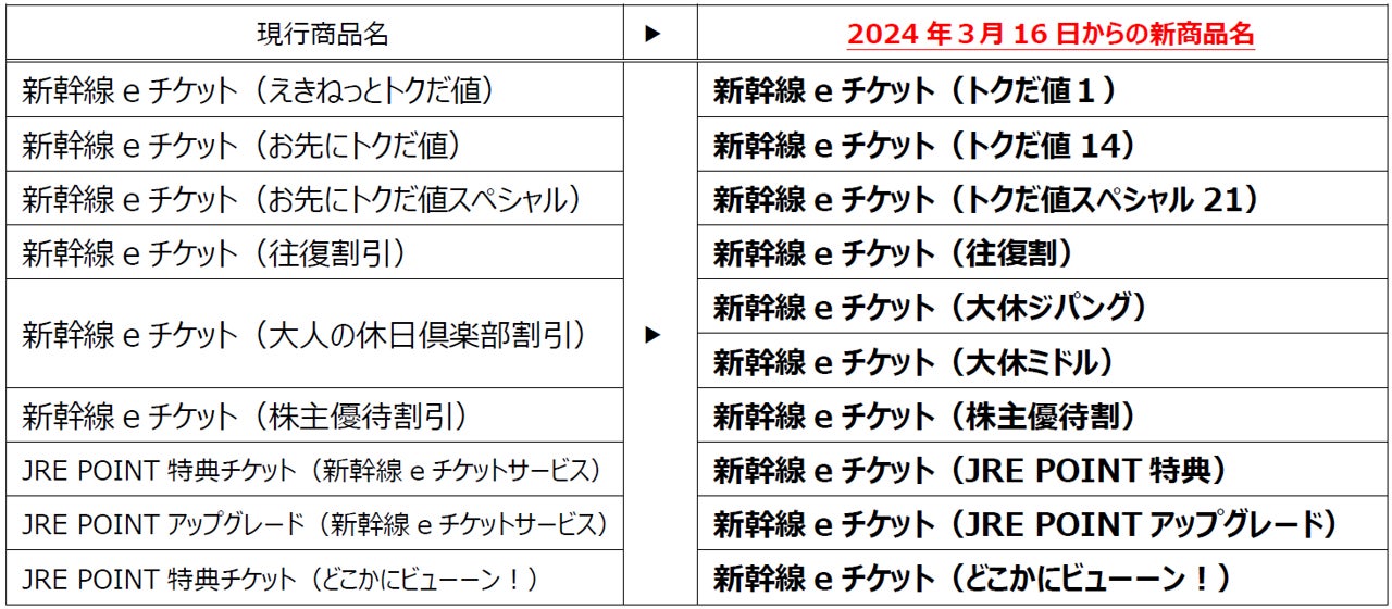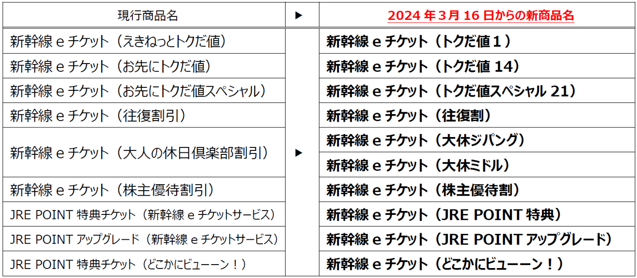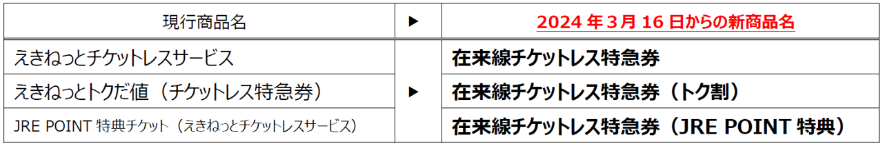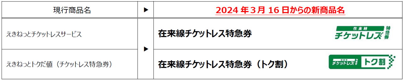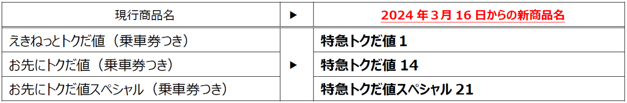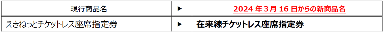 2024年3月16日よりえきねっと限定商品は、以下の通り名称を変更いたします。