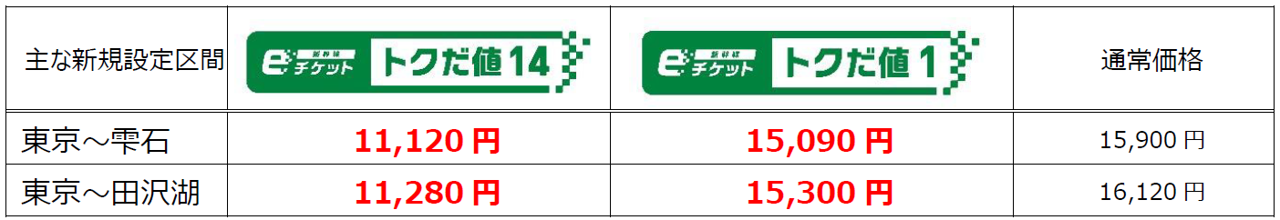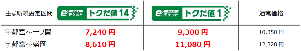 ・割引額:(トクだ値14)30%割引、(トクだ値1)10%割引 ※新幹線eチケット(通常期)の運賃・料金から