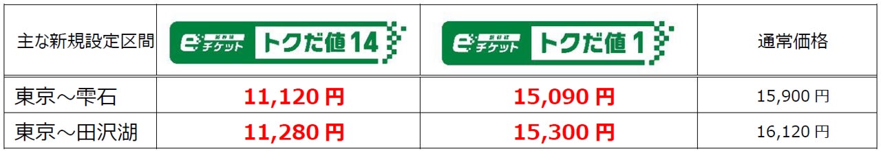 (3) 東北新幹線、秋田新幹線の「新幹線eチケット(トクだ値)」に設定区間を追加します。