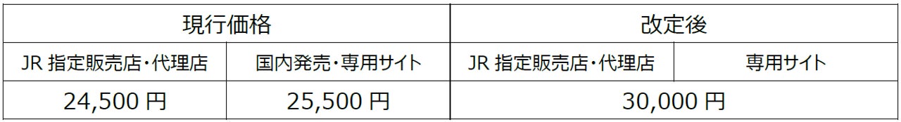 2024年3月16日から利用可能エリアを拡大したほか、これまでも専用サイトでの発売・指定席予約の導入、自動改札機の利用等によるサービスアップを行ってきたことから、2024年3月16日発売分より下表のとおり価格改定をいたします。