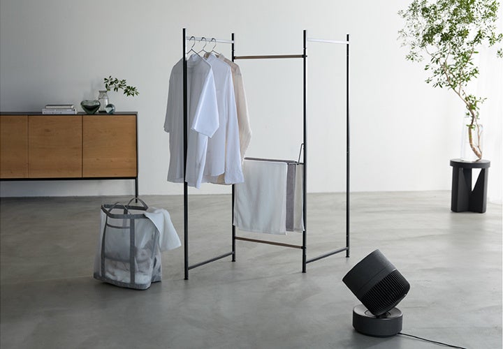 当社のサーキュレーターシリーズとして初めて首振り幅を左右4段階(※4)で最大360°、上下6段階(※5)で0°から最大90°に設定でき、衣類の下から上へ送風することで、衣類乾燥時間を約62%(※6)短縮できます。リモコンでは、より細かく角度を調整できるため、 衣類の干し方や部屋の大きさに合わせて送風できます。また、稼働状況をLED表示部に示すことで視認性が向上し、送風時の首振り角度や風量を一目で確認できます。