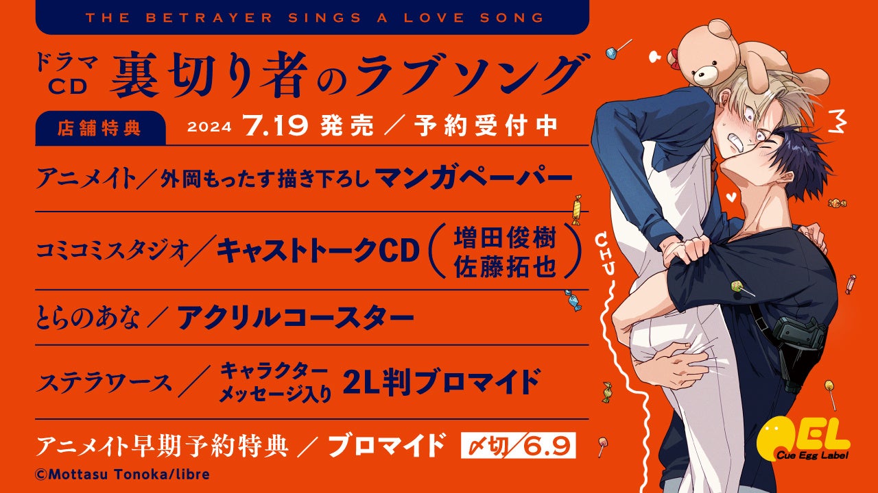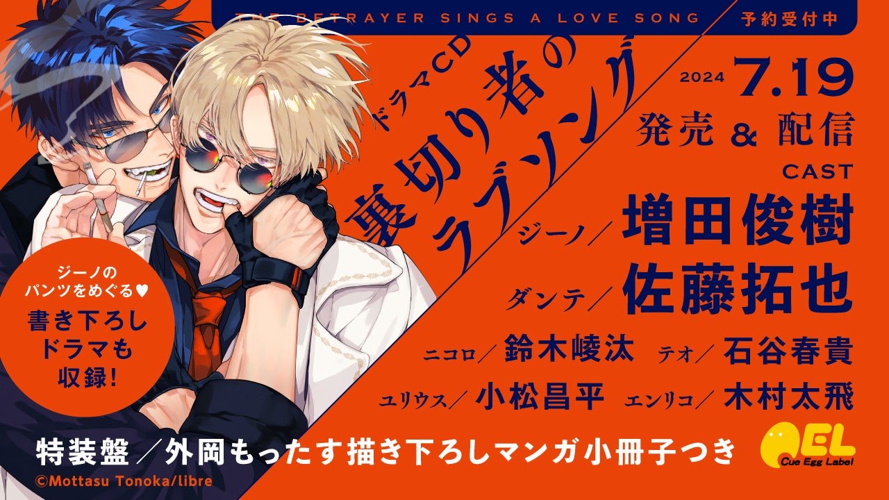 ドラマCD「裏切り者のラブソング」発売決定! PV動画公開【出演:増田俊樹・佐藤拓也】本日予約開始!!