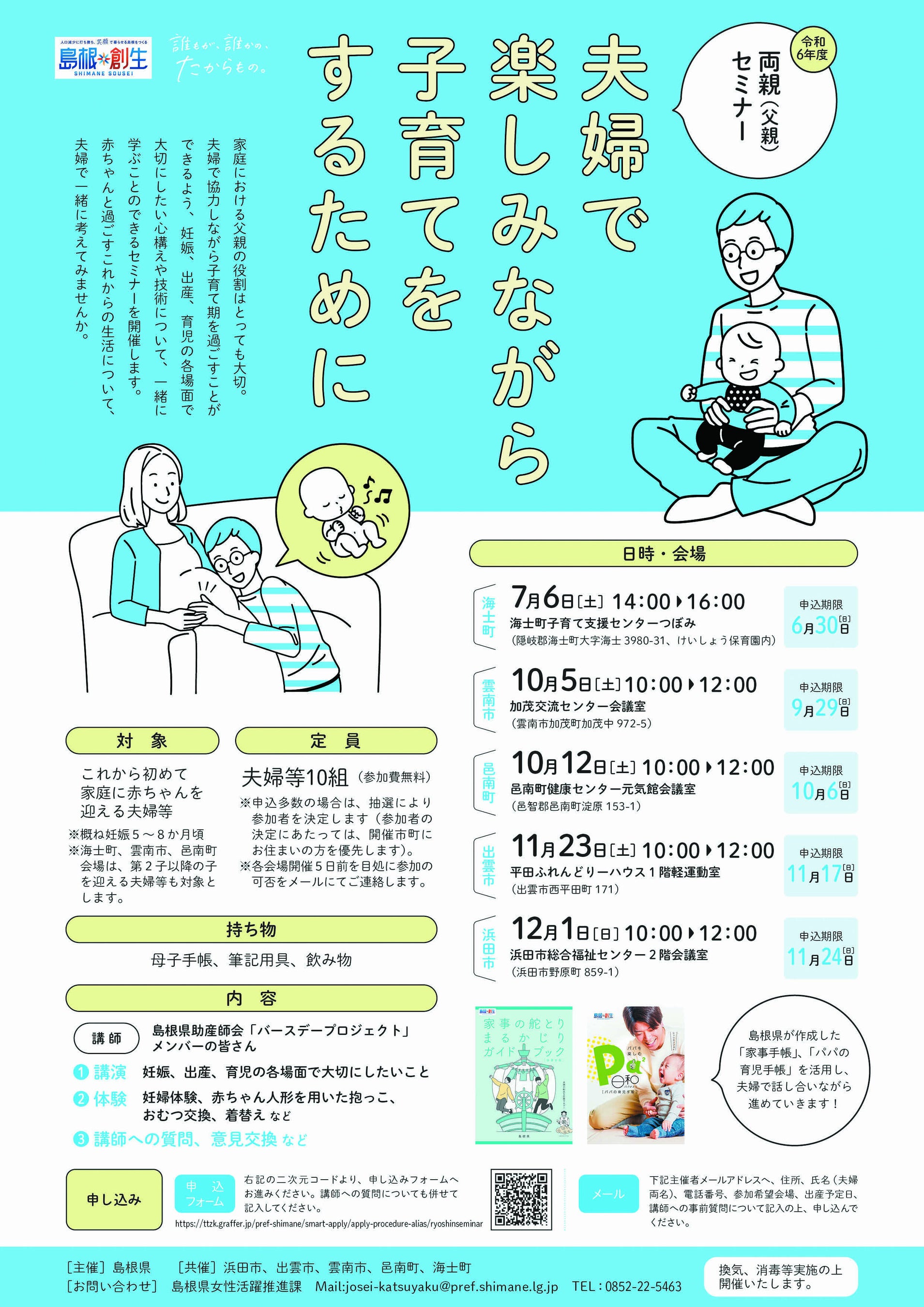 ※海士町、雲南市、邑南町会場は、第2子以降の子を迎える夫婦等も対象