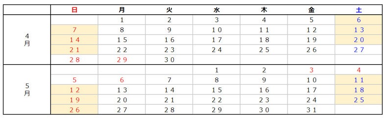 4月6日㈯・7日㈰・13日㈯・14日㈰・20日㈯・21日㈰