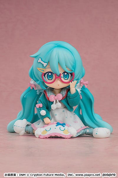 ねんどろいどどーるは、頭部サイズはねんどろいど、体のサイズは布のお洋服も着せやすい大きさの、豊富な可動が楽しめる動かして楽しい手のひらサイズのアクションフィギュアです。投稿サイト「piapro」で募集した『まったりくつろぐ♪おうちコーデ』をテーマに、INM氏が描いた初音ミクをねんどろいどどーるで再現いたしました。
