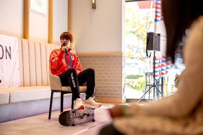三井不動産レジデンシャル株式会社(本社:東京都中央区 代表取締役社長:嘉村 徹)は、当社グループ会社である三井不動産株式会社がTEAM JAPANゴールド街づくりパートナーとして支援している公益財団法人日本オリンピック委員会(所在:東京都新宿区 会長:山下 泰裕、以下「JOC」)と共催で2024 年 12 月 1 日(日)に「堀米雄斗選手トークショー」をららテラスHARUMI FLAG内のTEAM JAPAN 2020 VILLAGEにて開催しました。