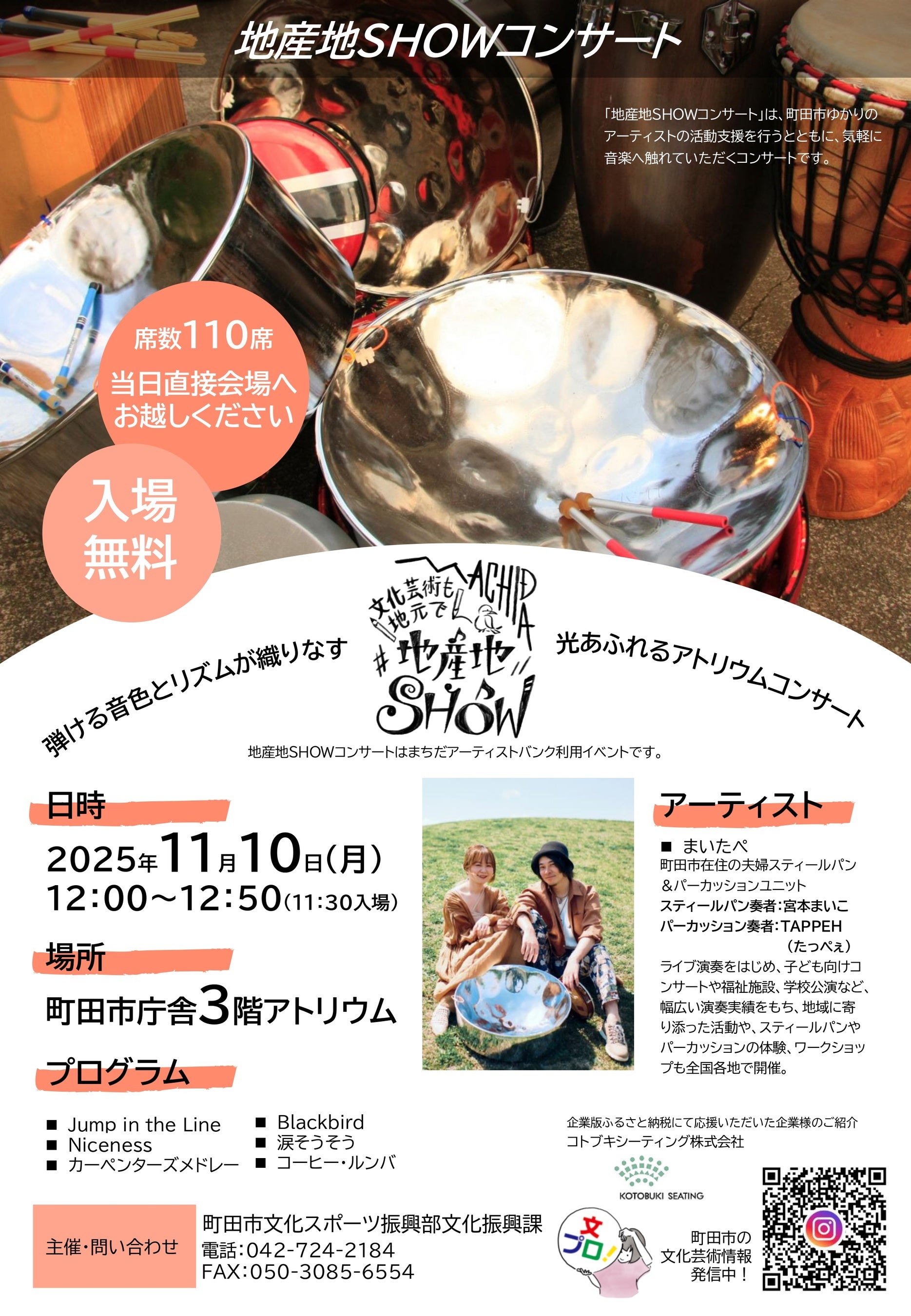 【東京都町田市】スティールパン&パーカッション夫婦ユニット「まいたぺ」による地産地SHOWコンサートを市庁舎にて開催します