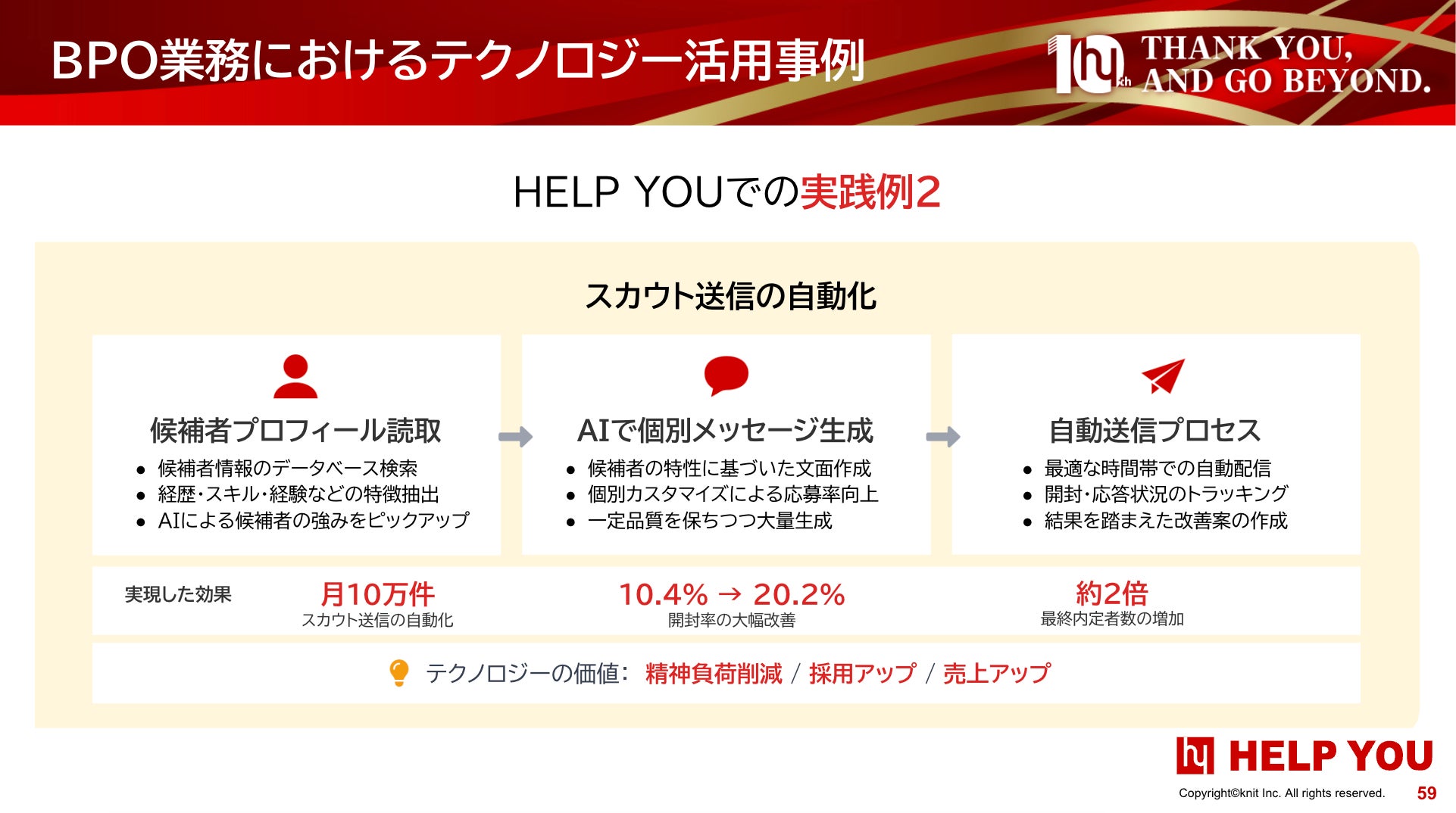 パネルディスカッションでは、具体例として「スカウト送信の自動化」が紹介されました。