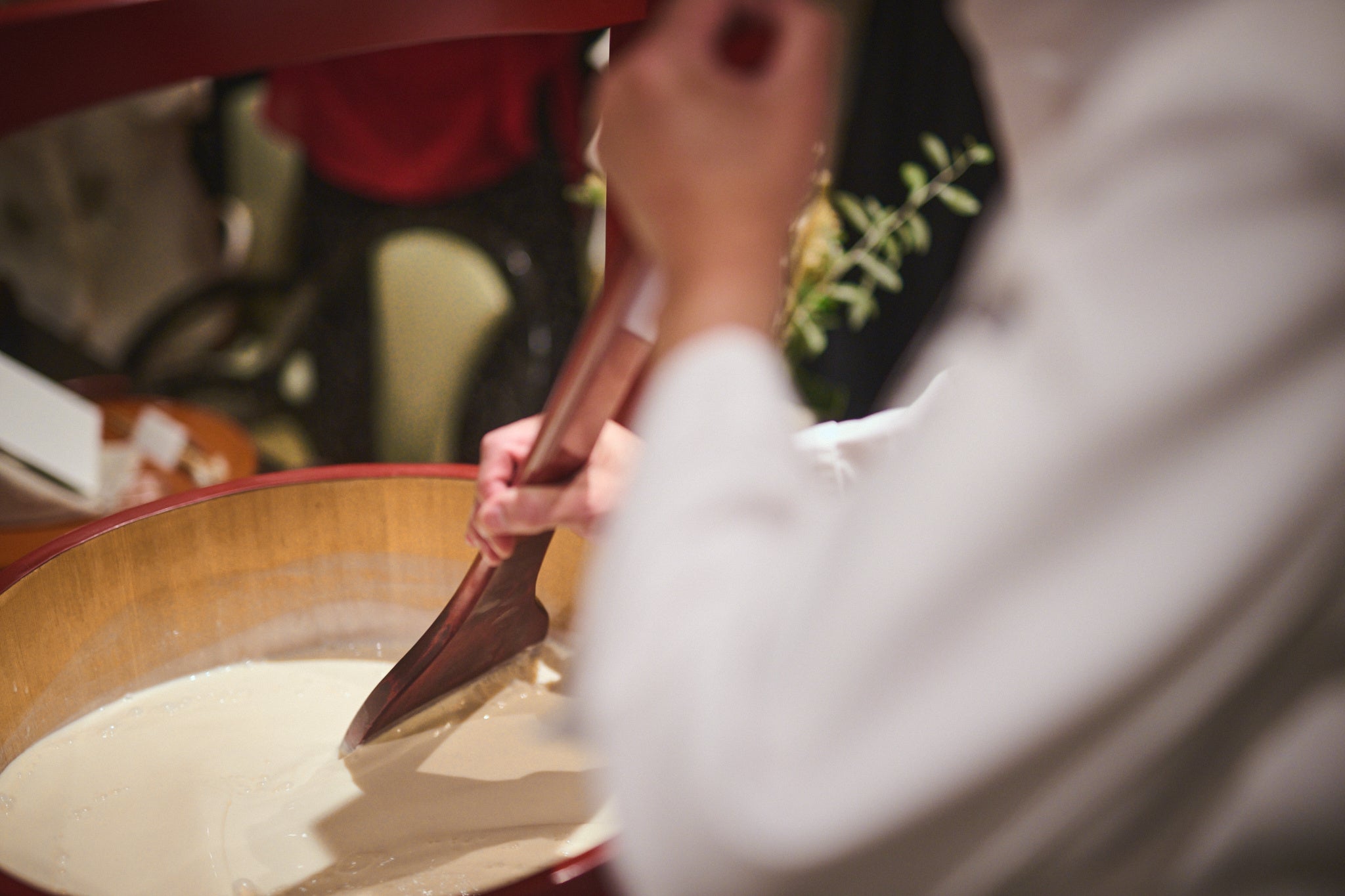 東京タワーのふもとに広がる約2000坪の敷地に建つ趣のあるとうふ屋うかいさんにて、出来立ての寄せとうふと赤ワインをペアリング。秋の味覚を堪能できる和食と、ずらりと並んだワインの数々から自分自身でお気に入りのペアリングを見つけることができる、実に楽しい会でした。