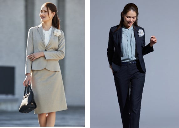 入卒園のシーンだけでなく、普段のビジネスシーンでもお使いいただけるスーツを中心に、華やかさのあるコーディネートをご紹介しております。