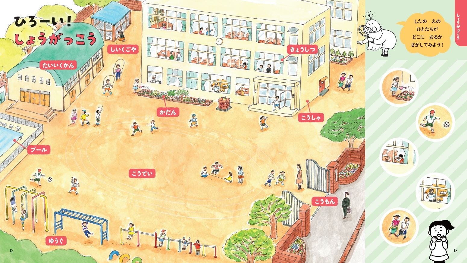 小学校ってどんなところ?どんな人がいて、何をするの?入学前のお子さんの漠然とした不安に、リアルな小学校の取材に基づくたっぷりの写真とイラストで応えます。
