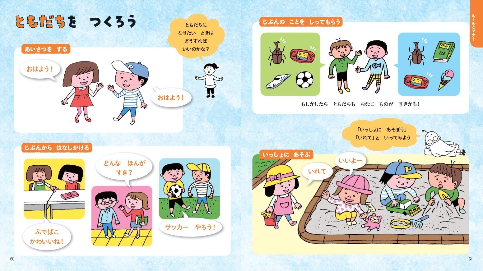 安全・防犯、敬語、友だちづきあいなど、おさえておきたいルール・マナーを紹介。自分を守るため、また周りの人に嫌な思いをさせないために、ぜひ伝えておきたい内容です。