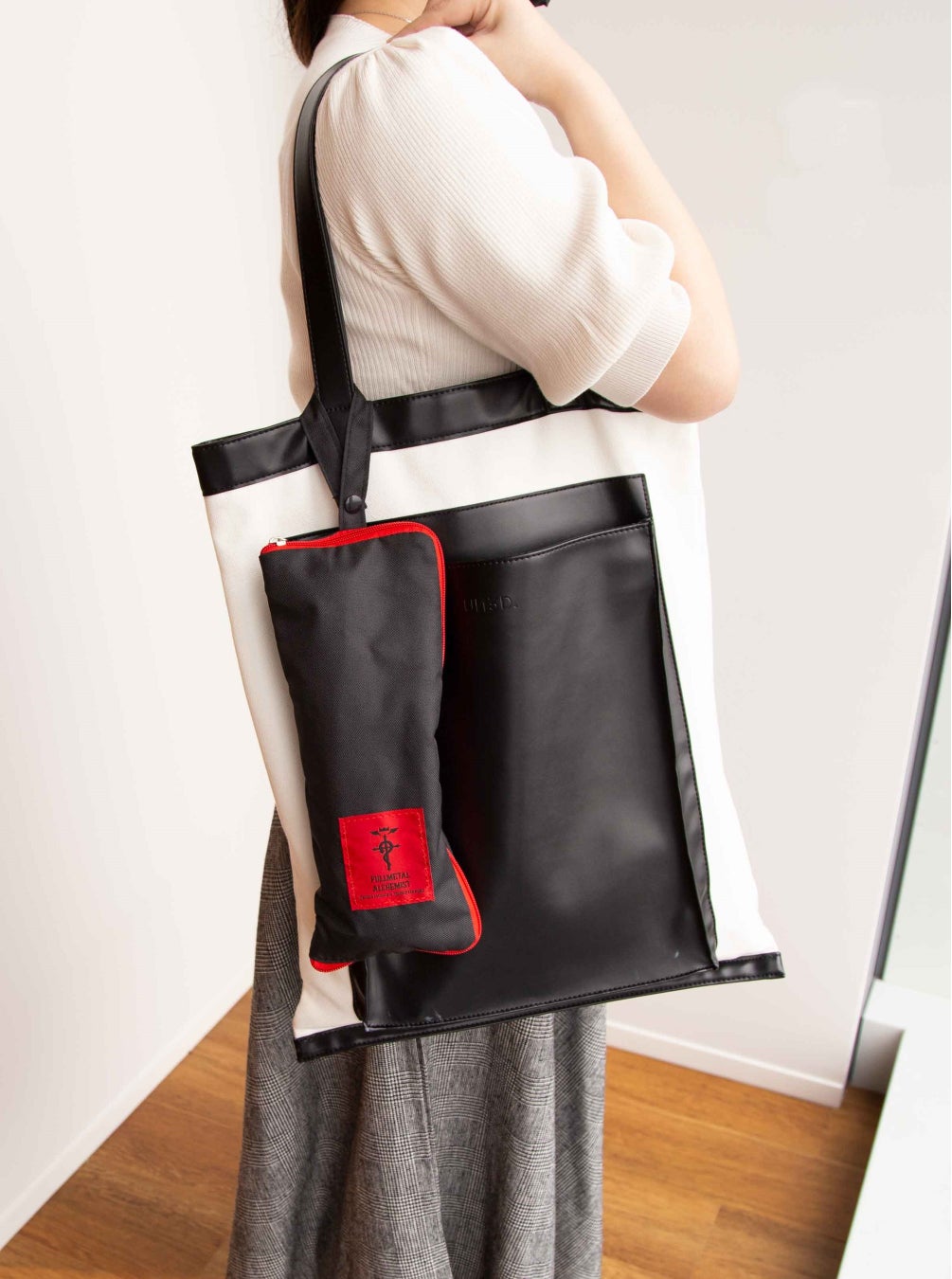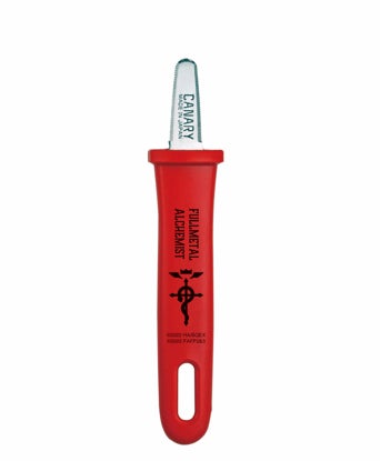 販売アイテムは全部で4アイテム。宅配の荷物等を簡単に開封できる『荷物開封カッター』はネットショッピングが主流となってきた今の時代にピッタリ。主人公エドのオートメイルを彷彿とさせるメタリックな刃先とフラメルの紋章の入った赤い持ち手がカッコいいデザインになっています。国家錬金術師の証である銀時計モチーフの『コンパクトミラー』やマスタング大佐の焔の錬成陣がデザインされ、折りたたみ傘やペットボトルなど濡れたアイテムも収納できる便利な『マルチポーチ』など、ハガレンファン必見の便利で嬉しいアイテムが勢ぞろい。
