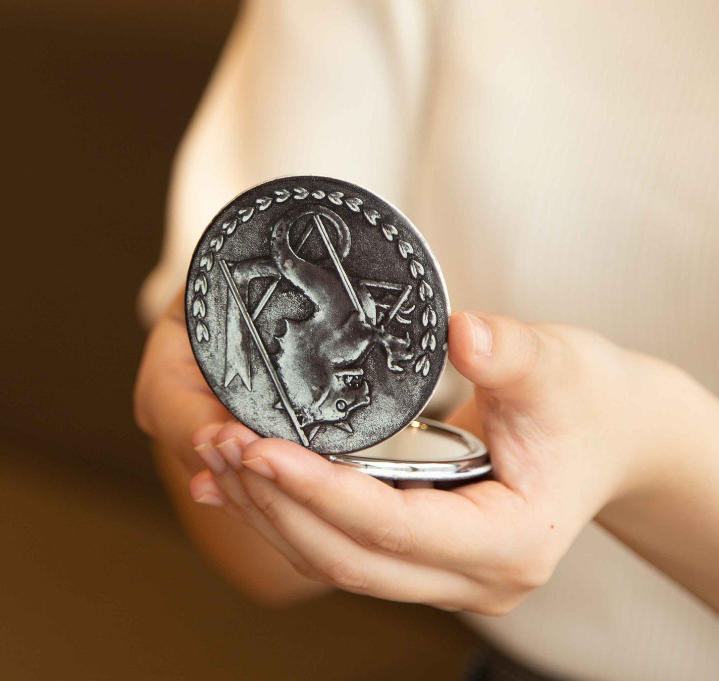 実際の映画小道具からデザインを描き起こした銀時計モチーフのコンパクトミラーは使うたびにワクワクする事間違いなし!
