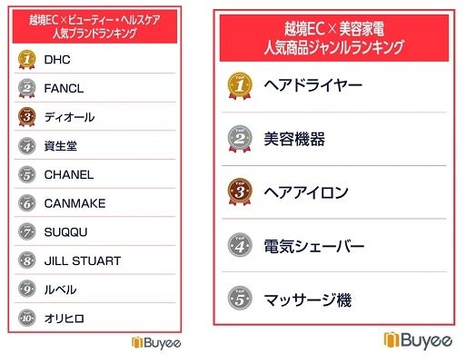 ビューティー・ヘルスケア分野ではサプリメントを扱うDHC、FANCLが1位と2位に入りました。日本に対する健康、安全、安心といったイメージが伺える結果となりました。日本ブランドとしては資生堂、CANMAKE、SUQQU(スック)、ルベル、オリヒロもランクインし、トップ10の中で7ブランドを占めました。