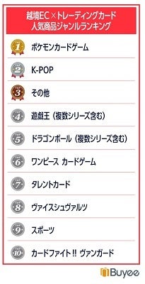トレーディングカード分野では、ポケモンカードゲームが1位という結果になりました。まとめ買いやパック購入よりも1枚の指名買いが多く、欲しいカードを購入しているという傾向が伺えます。K-POPでは、Stray Kidsやaespa、enhypenなど様々なK-POPアーティストのトレーディングカードが購入されています。