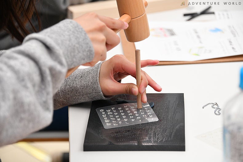 日本三大皮革産地でもある和歌山県。当日は日本三大皮革産地の本革を使用してご自身のお名前やアドベンチャーワールドのパークロゴなどを刻印してオリジナルチャームやキーホルダーの制作をお楽しみいただけます。