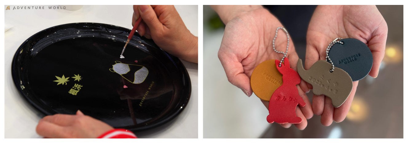 期間中、パーク内で伝統工芸品の制作体験が楽しめる「わかやま伝統工芸 ワークショップ」を開催いたします。今年で3度目となる本ワークショップでは、和歌山の伝統工芸品「紀州漆器」への蒔絵体験や、日本三大皮革産地である和歌山ならではの手作り体験として本革でオリジナルチャームの制作など、お子さまから大人まで幅広い世代の方にお楽しみいただける内容となっております。和歌山のものづくりを通してお子さまの感性を表現し、⼦どもたちの「できた!」の喜びを家族で分かち合う機会にしてみてはいかがでしょうか?
