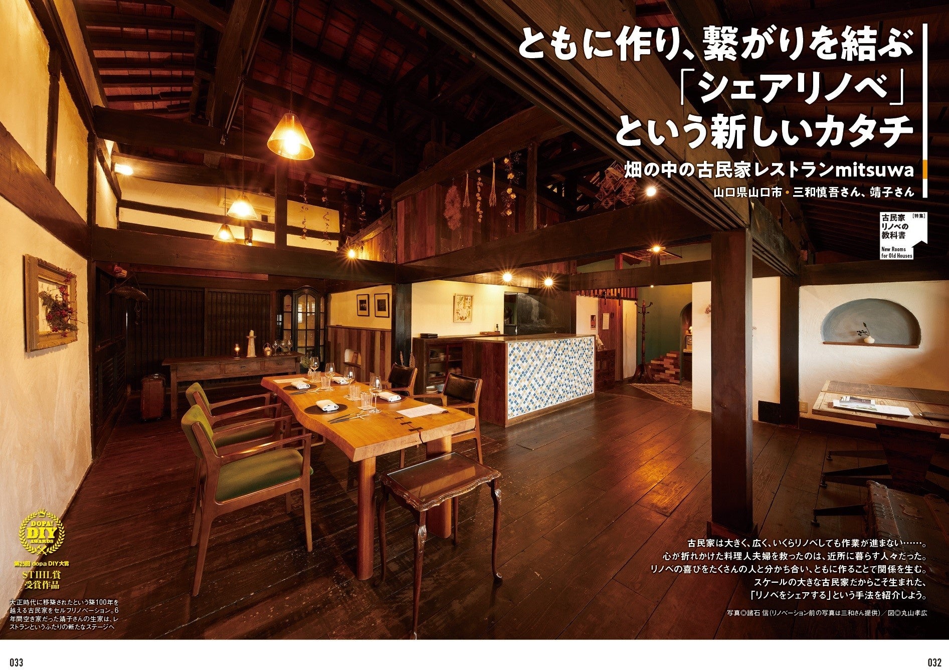 失われつつある現代の建築遺産でもあり、移住や2拠点居住の住居、そしてDIYリノベーションの憧れのターゲットでもある古民家。4月号では、そんな古民家をDIYリノベという角度から徹底解剖。その定義をはじめ、物件を購入する際のコツから、知っておくべき基礎知識、壊し方、直し方、断熱方法まで……古民家リノベの秘訣を余すことなく公開します!