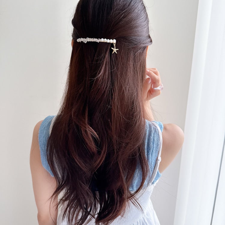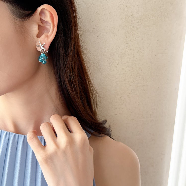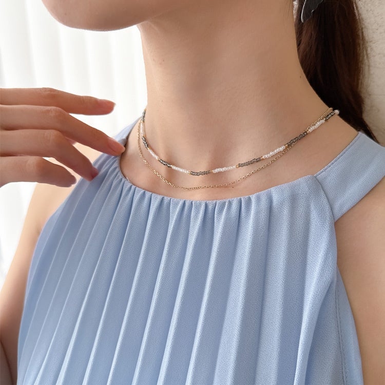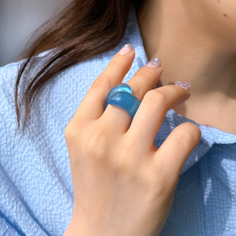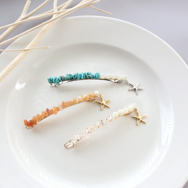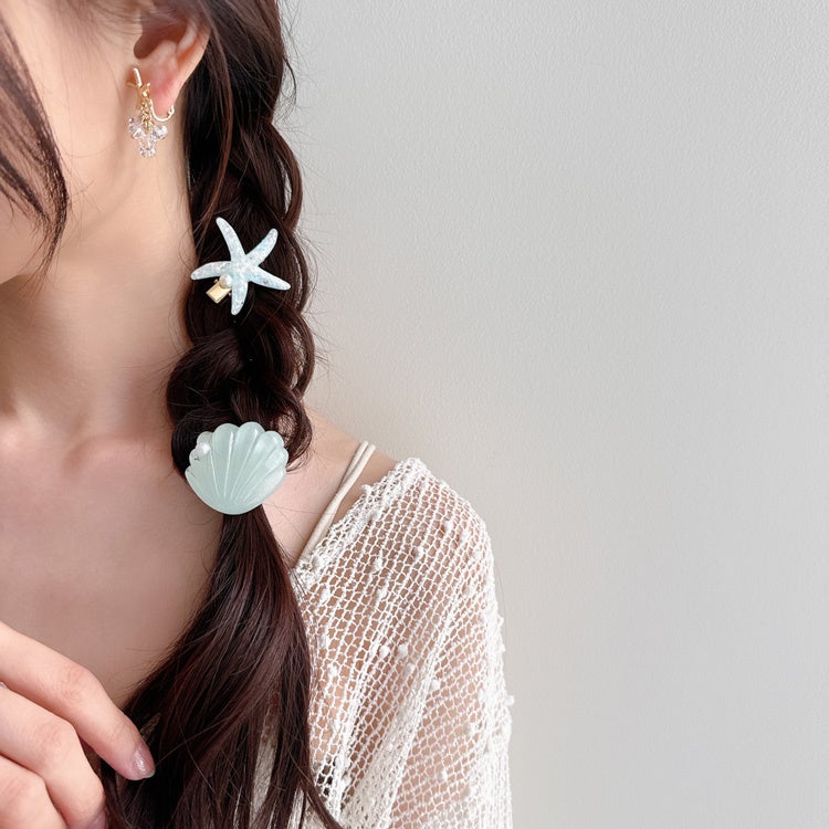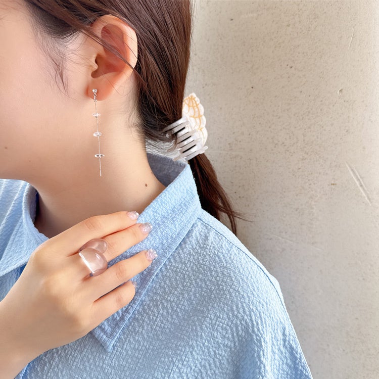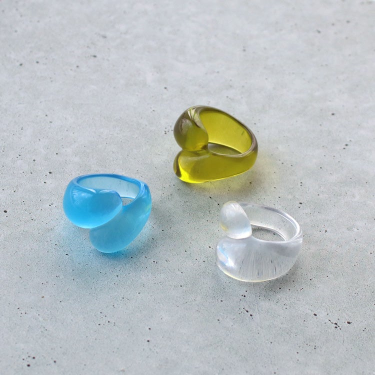 透明感あふれるクリアカラーと天然石を使ったアイテムも。