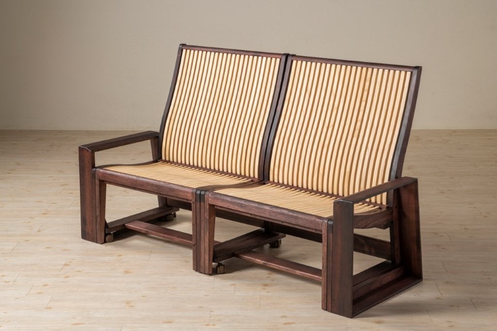 体のカーブに合わせた作り。左右2つに分かれるので、一人用の椅子としてもお使いいただけます。