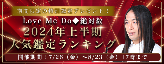 ※『2024年上半期人気鑑定ランキング』をご利用いただくには、公式占いサイト「Love Me Do◆絶対数」(https://lovemedo.site)への会員登録が必要です。(月額330円)