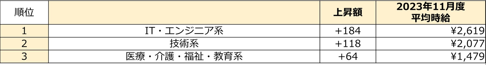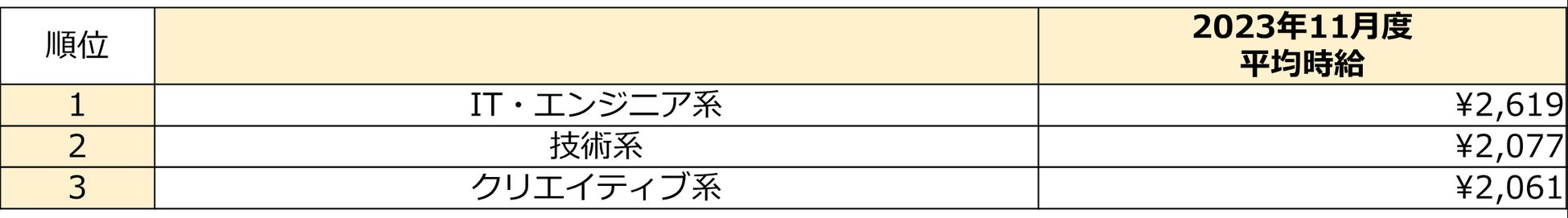 11月度の三大都市圏 職種別平均時給は、【IT・エンジニア系】【技術系】で過去最高を更新。