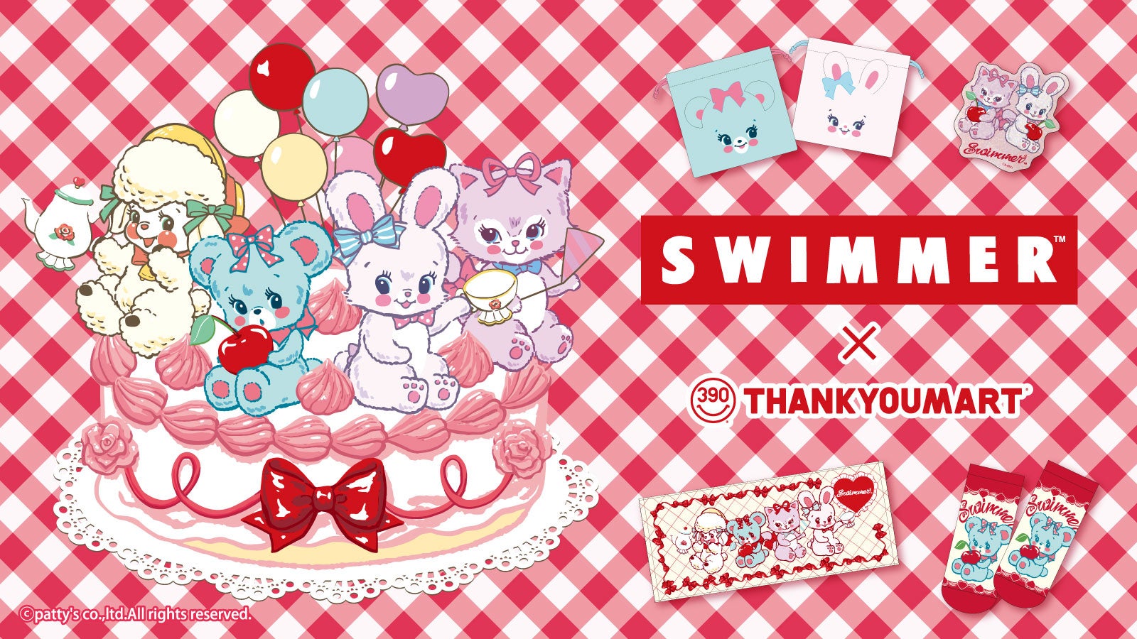 「Be Smile, Be Kawaii」をテーマに、キャラクターの限定アイテムを中心としたカワイイ推しグッズがいつ来てもALL390円で手に入るショップ「サンキューマート」(エルソニック株式会社)は、雑貨ブランド「SWIMMER」(スイマー)とのコラボレーション雑貨を、全国のサンキューマート店舗で5月上旬より入荷次第販売開始いたします。